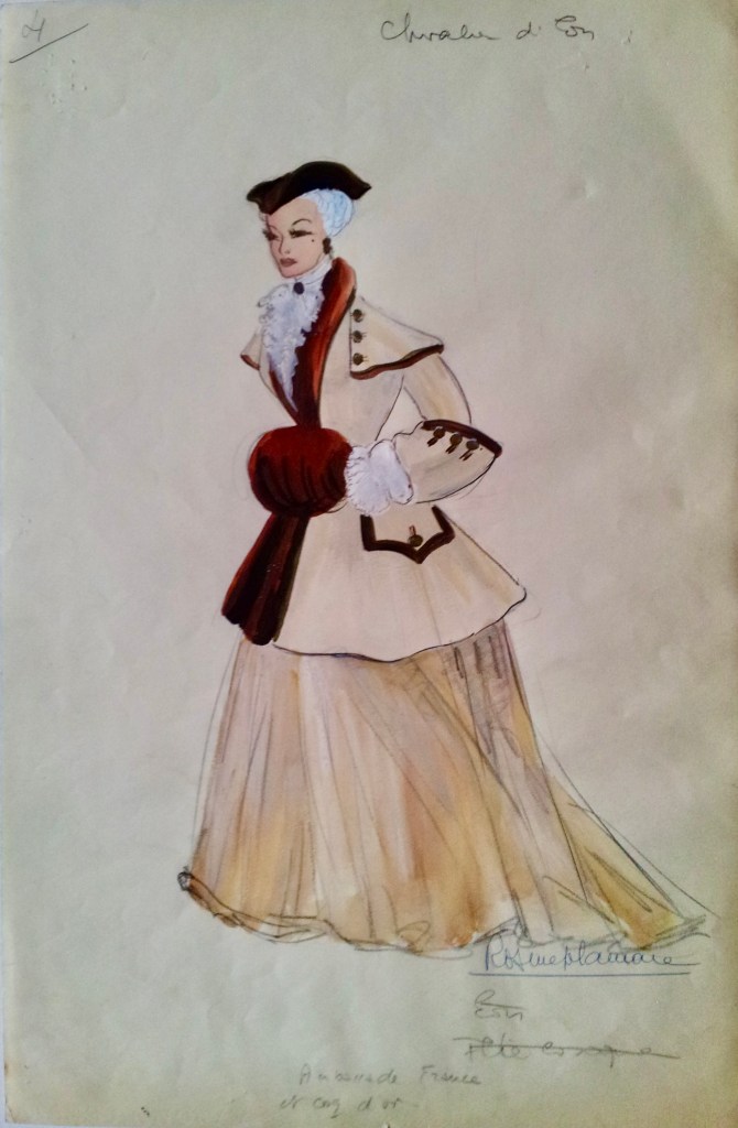 Maquette d’un costume pour Le Secret du Chevalier d’Éon de Jacqueline Audry (1959), Rosine Delamare, droits réservés